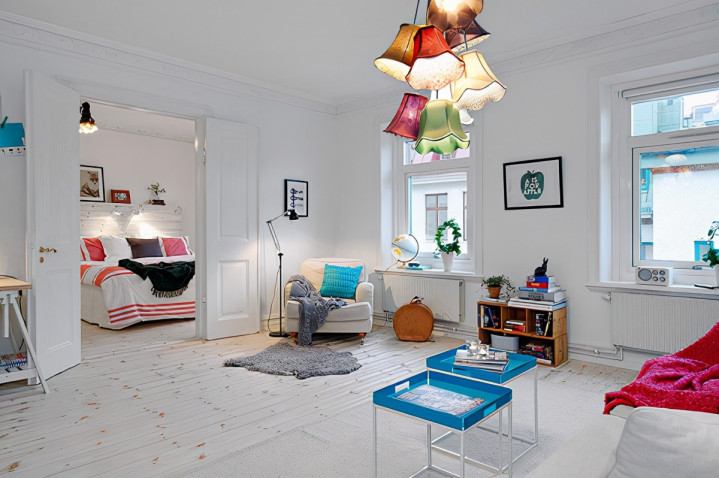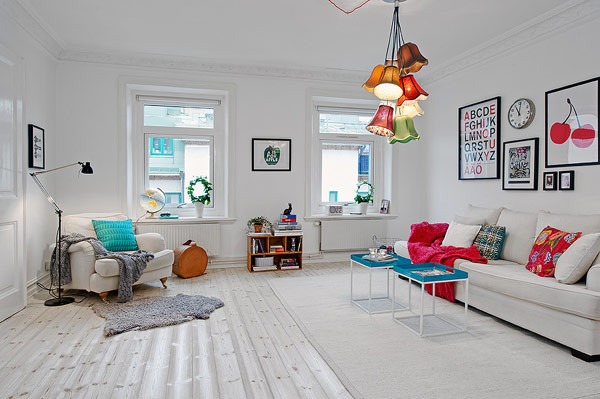客厅的主灯是彩色灯饰遮挡,这种维握的灯饰在白色环绕的环境下,更显得好意思瞻念,很有维握感。