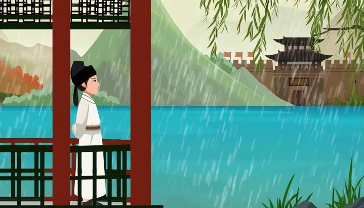 《饮湖上初晴后雨》里,娄坚落榜后在西湖边发怔,友东谈主递过一壶酒,他望着水光潋滟的湖面笑了。