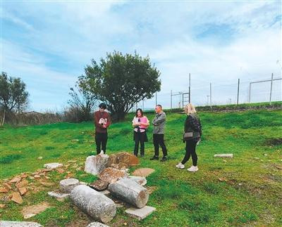 中国古典文静计议院院长李新伟(右二)和该院使命主说念主员在安盖洛卡斯特龙进行名胜考查。中国古典文静计议院供图
