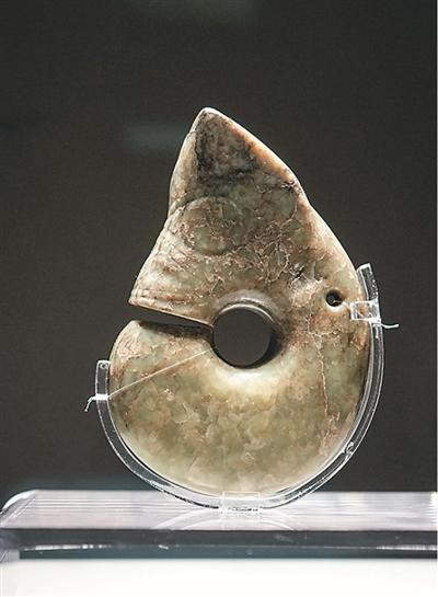 在牛河梁名胜博物馆拍摄的展品玉猪龙。(尊府相片)新华社记者 潘昱龙摄